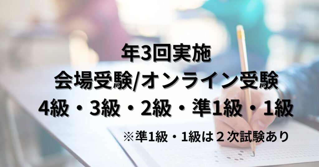 実施団体は語学検定協会で、春季、秋季、初春の年3回の実施です。
